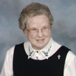 The Mass of Christian Burial for Sister Francis Eugene was celebrated June 6, with the Rev. Daniel Hopcus presiding. She is survived by a sister, Sister Richard Bussing of Saint Mary-of-the-Woods, and two brothers, Frank of West Terre Haute, Ind., and Eugene of Granada Hills, Calif. She was preceded in death by a brother, Fred, and a sister, Sister Eleanor Bussing.