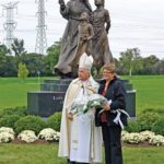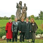 Providence Associate and artist Teresa Clark and Cardinal Francis George, OMI, Archbishop of Chicago, stand in front of the Saint Mother Theodore Guerin statue that Teresa created. The statue was dedicated on Sept. 29, 2009, at the All Saints Cemetery in Des Plaines, Ill.