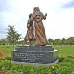 The All Saints Cemetery statue features Saint Mother Theodore with two young girls and one of my favorite quotes from her. She wrote this bit of advice to her sisters on mission, “Love the children first, then teach them.”