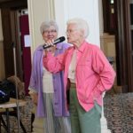 Sister Jean Fuqua takes the mic while Sister Pat Mahoney looks on.
