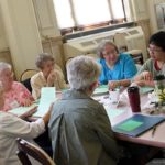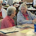 Sisters Rita Clare Gerardot and Laura Ann McLaughlin chat at their table.