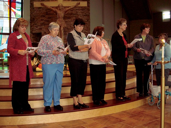 Seven Providence Associates renewed their commitments during the Rite of Commitment and Renewal on Nov. 19, 2011, at St. Malachy Catholic Church in Brownsburg, Ind. They are (left to right): Nancy McClaskey, Indianapolis; Sue Hyland, Kokomo, Ind.; Kathy Newport, Beech Grove, Ind.; Donna Gilmore, Indianapolis; Mary Carroll Blocher, Greenville, Ohio; Debbie Dillow, Lizton, Ind.; and Judy Meyer, Plainfield, Ind.