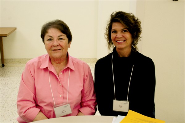 Orientation: Sister Rosemary Nudd (left) and Lori Strawn of Wichita, Kan., are elated to be with one another again as candidate and companion during the second orientation for 2011-2012 Providence Candidate-Associates on Saturday, Oct. 29, 2011, at the Woods. Lori was one of Sister Rosemary’s students at Saint Mary-of-the-Woods College.
