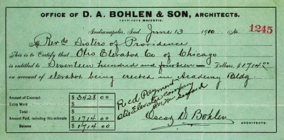 This invoice from the office of D.A. Bohlen and Son, architects, shows that the entire bill for the project cost $3,428.