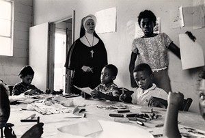 Along with 93 other protestors, three Sisters of Providence were arrested on federal trespassing charges on November 17 2002 for crossing an arbitrary line at Fort Benning, Ga. Sisters Adele Beacham, Rita Clare Gerardot and Joann Quinkert each were sentenced to 12 months probation. Sister Adele also was sentenced to house arrest and 250 hours of community service; Sisters Rita Clare and Joann received 500 hours of community service each.