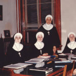 Sisters gather for the sesquicentennial celebration of the congregation in 1990. The Sisters of Providence of Saint Mary-of-the-Woods, Indiana, were founded by Saint Mother Theodore Guerin in 1840.