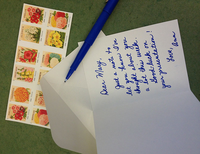 Perhaps because hand-written communication is so rare these days we appreciate it more. Thanks for reminding us that this quick, inexpensive expression of concern, care and love can be such a boon both to recipient and writer.