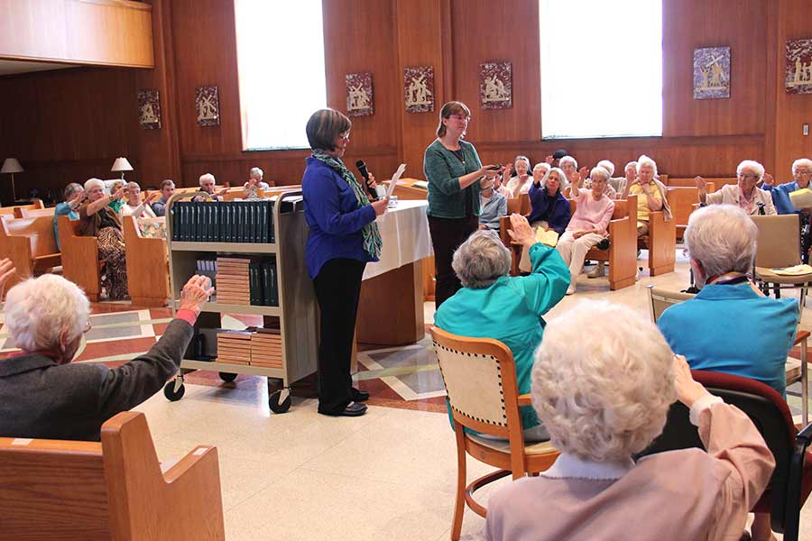 On Wednesday afternoon, Sept. 25, a large number of Sisters of Providence gathered in St. Joseph’s Chapel in Owens Hall to share in a simple prayer of “missioning” and blessing for Sister Arrianne Whittaker as she transitioned into her mission novice year.