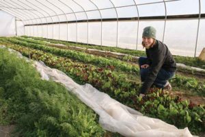 Crops are grown directly in the ground beneath the high tunnel that is made out of a layer of thick plastic. Row covers placed on the plants act like a blanket that roughly adds about three more degrees of warmth.