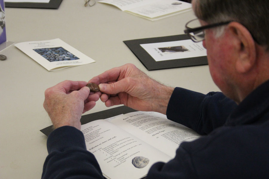 Associate Phil Brady reflects with a rock as part of the Saturday morning prayer.