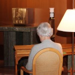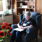 Associate Marilyn Neuman finds a comfortable place to pray during an individual reflection time.