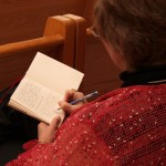 Archivist Sister Marianne Mader talks to the group about Saint Mother Theodore’s journal.