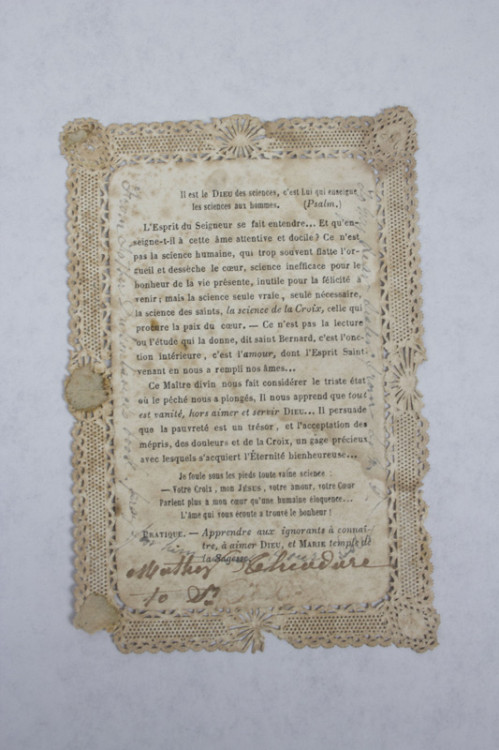 The Seven Dolor Beads were given by Mother Theodore to Eugenia Doyle’s mother. They were returned to St. Mary’s after the death of the latter.