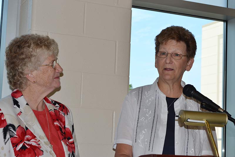 Following the reflection on Sister Wendy’s life, everyone gathered at the entrance of the center where General Officer Sister Lisa Stallings, also a classmate of Sister Wendy, offered a prayer. General Superior Sister Denise Wilkinson and Dottie then cut a ribbon officially dedicating the entrance, where a sign was placed.