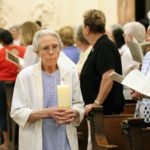 Sister Bernadette Mary Carroll carries a candle in the entrance procession.