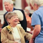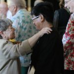 50-year jubilee celebrant Sister Cathy Campbell is greeted by a guest in 2016.
