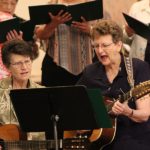 This sister rocks! Sister Carolyn Bouchard with her electric guitar at communion time.
