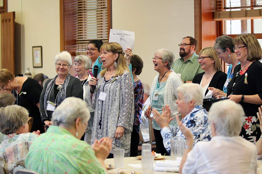 Providence Associates lead a lively song and dance during the supper social with the sistesrs. (photo by Amy Miranda)