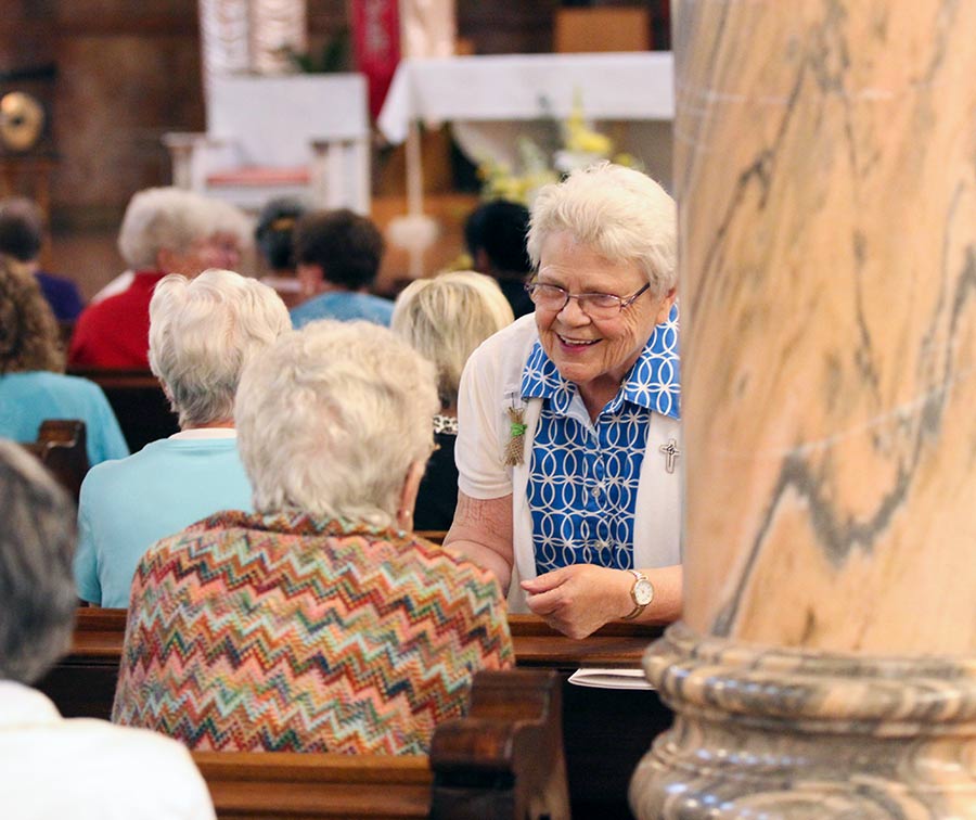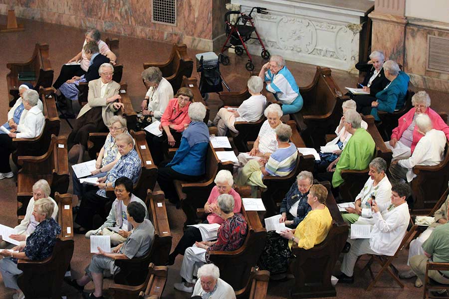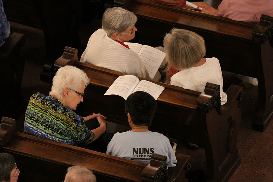Sisters Lucy Nolan and Mary Fran Keusal at the closing Mass. (photo by Jason Moon)
