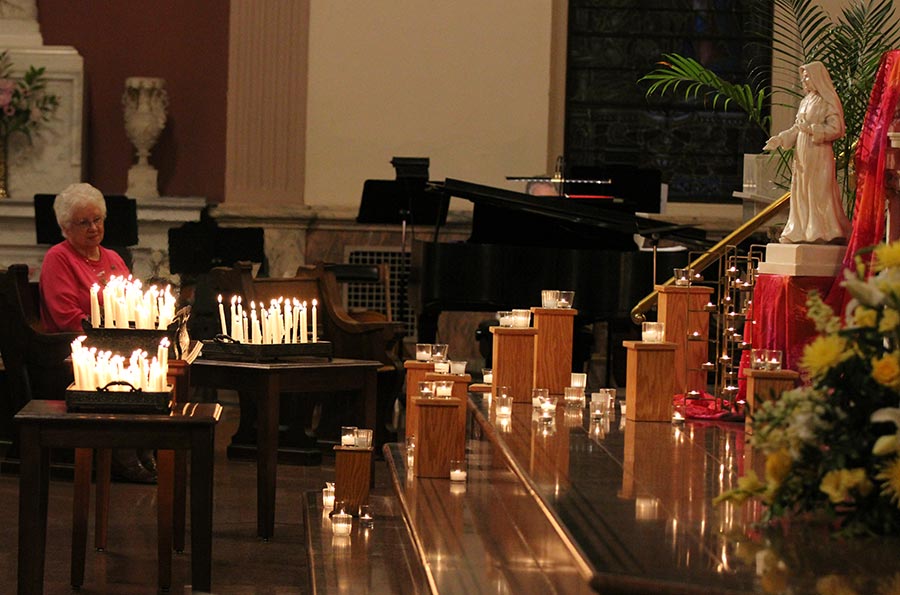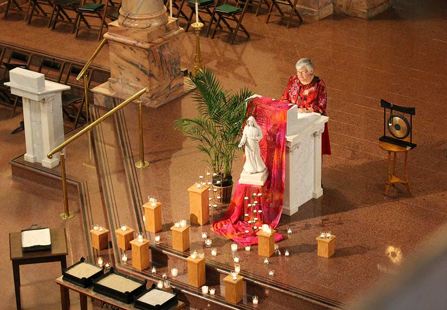 Sister Kay Manley and the display of candle light during the opening ritual for Chapter. (photo by Amy Miranda)