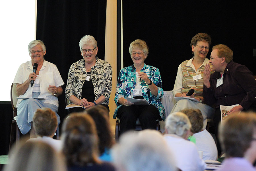 Sister Denise Wilkinson (from left), Sister Ann Margaret O’Hara, Sister Dawn Tomaszewski and Sister Nancy Nolan, represent the current, past and future general superiors. (Photo by Sister Evelyn Ovalles)
