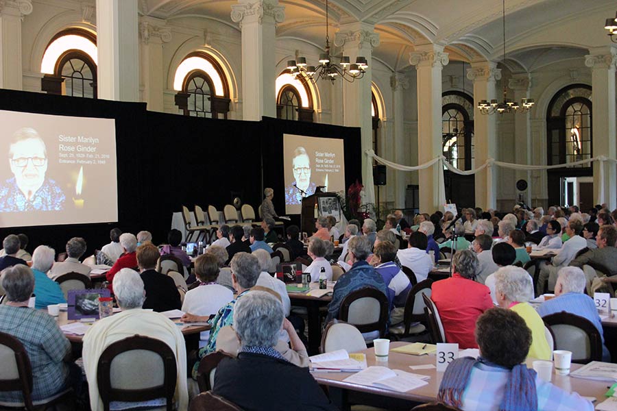 Sisters and associates view a touching memorial video of all sisters and associates who have died in the past year. (photo by Amy Miranda)
