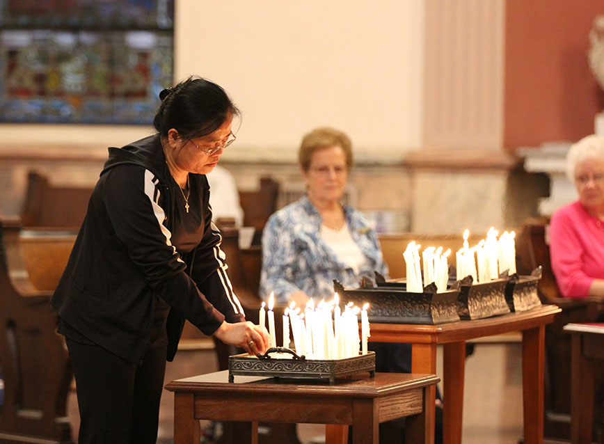 Sister Su-Hsin Huang places her candle during the opening ritual. (photo by Amy Miranda)
