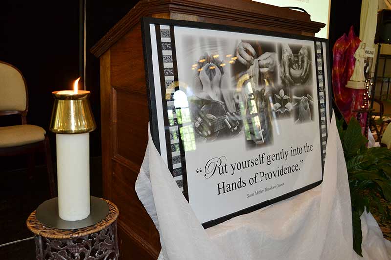 Chapter prayer environment includes statue of Saint Mother Theodore Guerin (photo by Jason Moon)