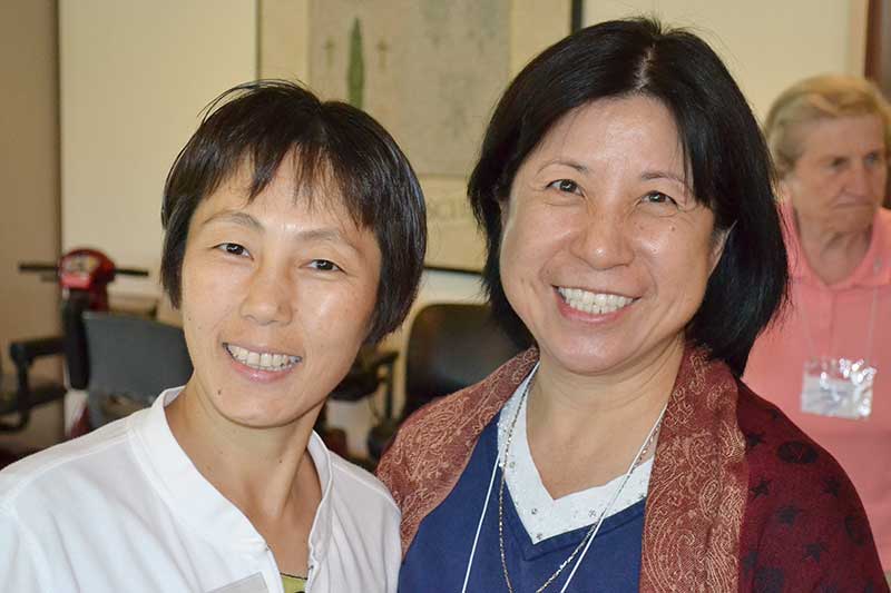 Newly elected General Superior Sister Dawn Tomaszewski with Sister Editha Ben. (Photo by Sister Joni Luna)