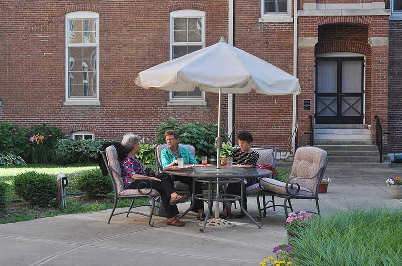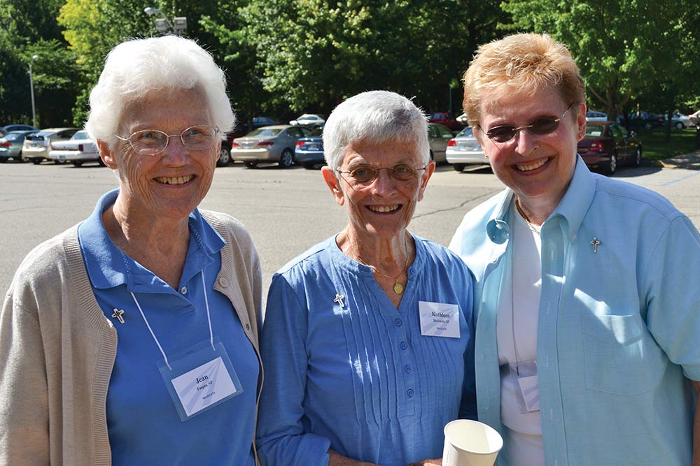 Sister Jeanne Hagelskamp (left) chats with Sister Dawn Tomaszewski (center) and Sister Pamela Pauloski. (Photo by Sister Evelyn Ovalles)