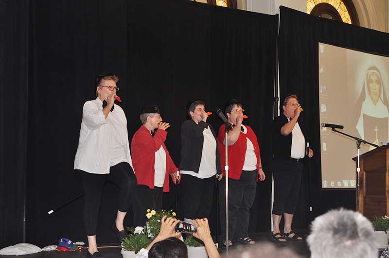 Providence Associates lead a lively song and dance for the sisters during the social supper with the sisters and associates. (photo by Amy Miranda)