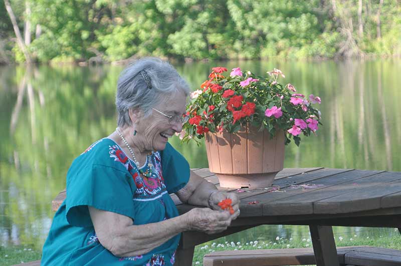 Sister Barbara Ann Bluntzer at St. Joseph Lake during a break in chapter. (Photo by Sister Evelyn Ovalles)