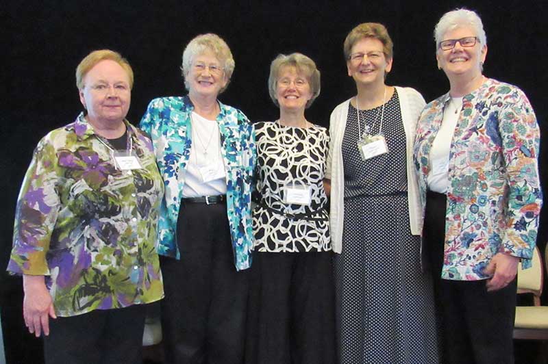 Sisters of Providence who were elected as General Officers during the 2016 General Chapter included (from left) Sister Mary Beth Klingel, Sister Jeneen Howard, Sister Jeanne Hagelskamp, Sister Dawn Tomaszewski (who will minister as General Superior) and Sister Lisa Stallings. (Photo by Sister Joni Luna)