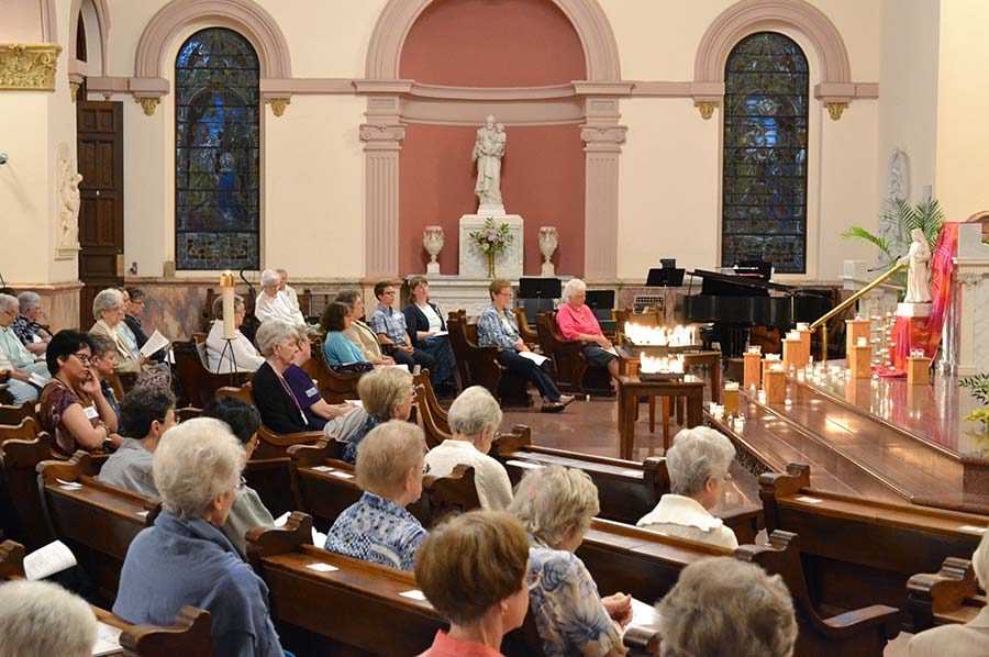 Sisters and associates at the candle-light prayer service that opened the Chapter on Sunday evening.