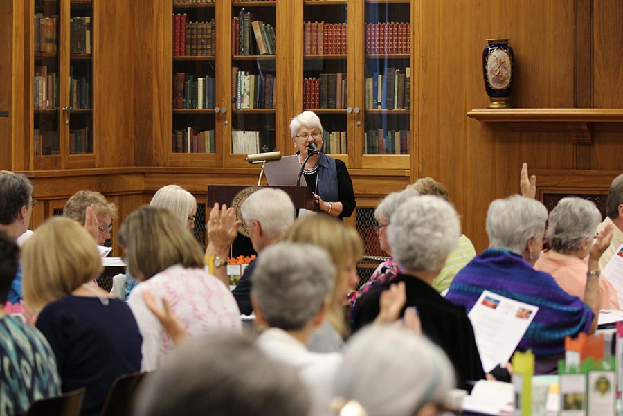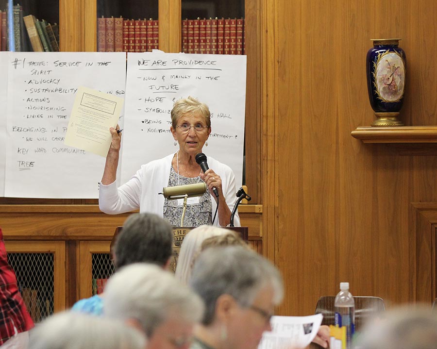 Sister Jenny Howard presents to the Providence Associates during their annual meeting on the Congregations efforts and successes at inviting new members.