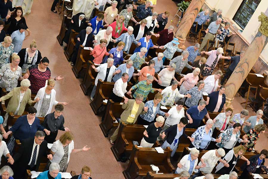 Sisters of Providence, Providence Associates and other guests join hands for the Lord’s prayer during the celebratory Mass.