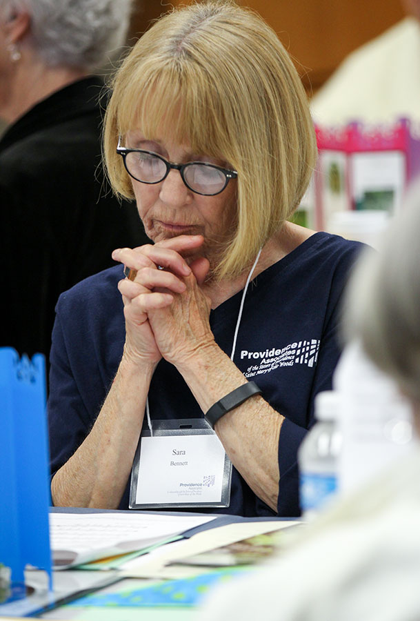 Providence Associate Cynthia MacWhorter during a table discussion with sisters and associates.