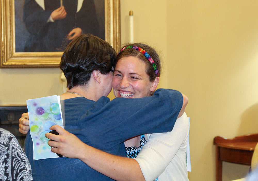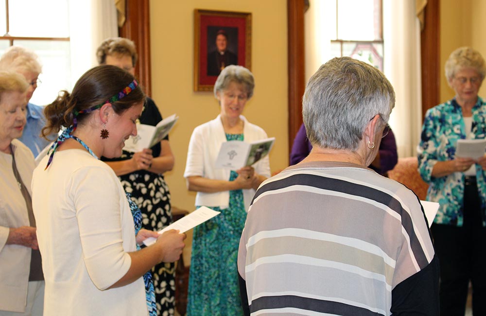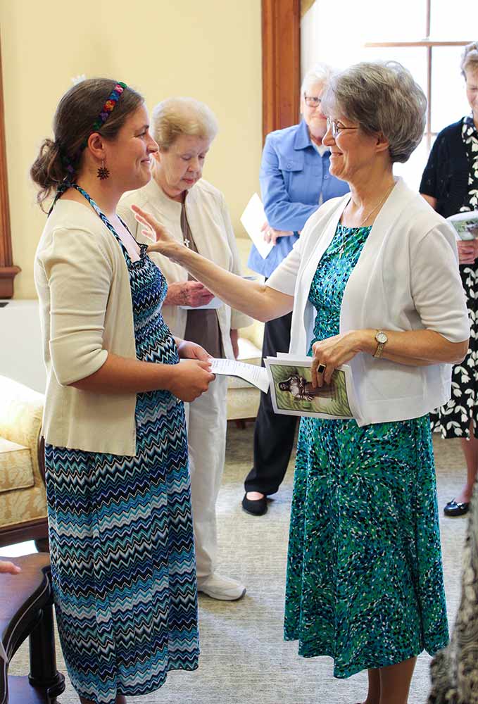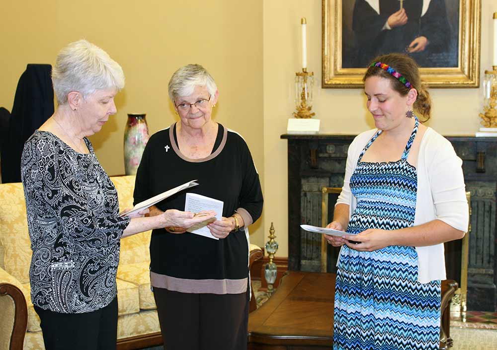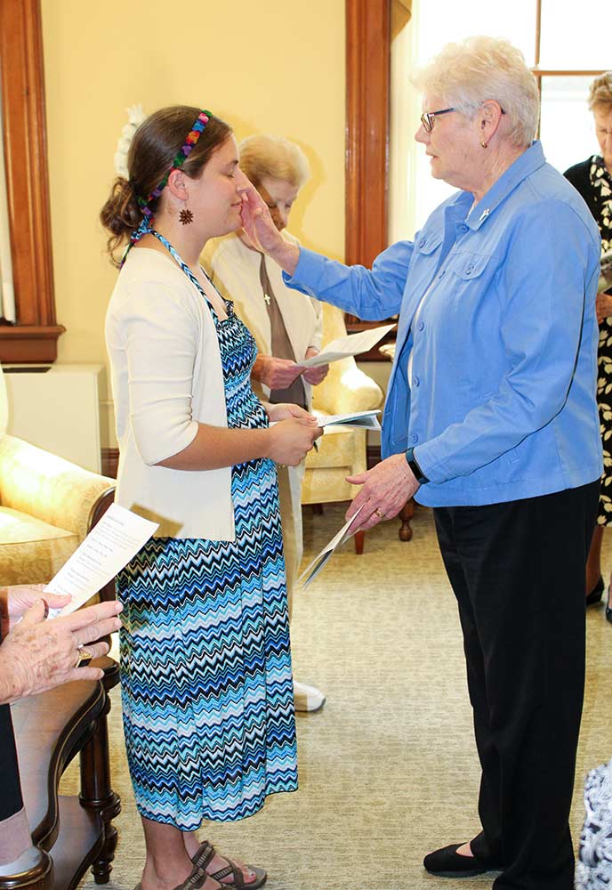 Wednesday afternoon, Sept. 7, was an exciting moment for the Sisters of Providence Congregation. A new woman joined the sisters as a postulant, the first year of formation in becoming a Sister of Providence. Emily TeKolste of Indianapolis, Indiana, officially entered the Congregation with a ritual in which she knocked at the door of Providence Hall seeking entrance into the Congregation. From there she was greeted by the General Superior and the Sisters of Providence leadership and formation team plus sisters in the formation community for a meaningful prayer ritual.
