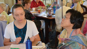 Following the conversation, a table leader wrote down her group’s responses to key questions on the topic. These were eventually shared in synthesized form with the entire Chapter body for affirmation. That way, all members contributed to creating the Congregation’s direction for the days to come.