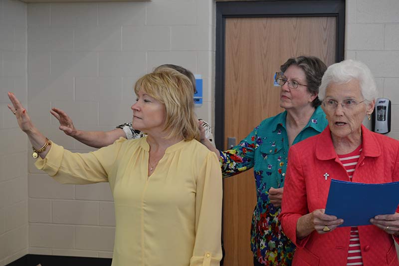 Family members of Sister Jeanne were present to unveil the sculpture and Sister Jean Fuqua provided the blessing.