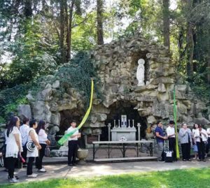 On Sept. 9 the Terre Haute Filipino community made a Marian Pilgrimage to the sacred shrines and spaces devoted to Mary at Saint Mary-of-the-Woods. The gathering was held to celebrate the 100th anniversary of Mary’s apparition in Fátima, Portugal. At each stop a different pilgrim led a portion of the rosary. The procession included the Statue of Our Lady of Victory, the Statue of Our Lady of Providence in Providence Park, the National Shrine of Our Lady of Providence, Our Lady of Lourdes Grotto and the Shrine of Our Lady of Fatima. All processed in silent prayer. The pilgrims walked to the Church of the Immaculate Conception to celebrate Mass. After Communion all children and teens placed a rose before the statue of Mary in the Church. The day concluded with a fabulous meal prepared by the Filipino community and shared with all participants and sisters.