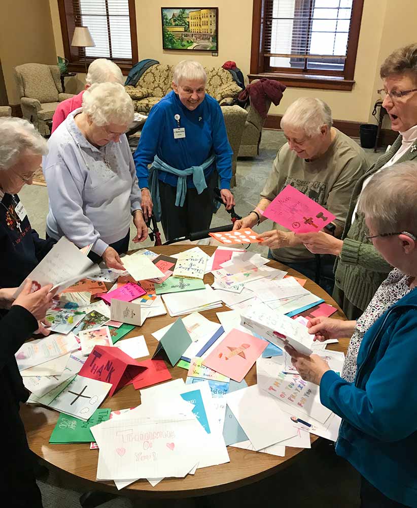 Smiles, exclamations, chuckles and merriment abounded when sisters at Saint Mary-of-the-Woods gathered to view the cards.