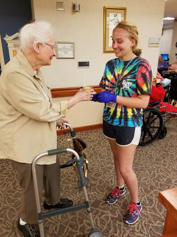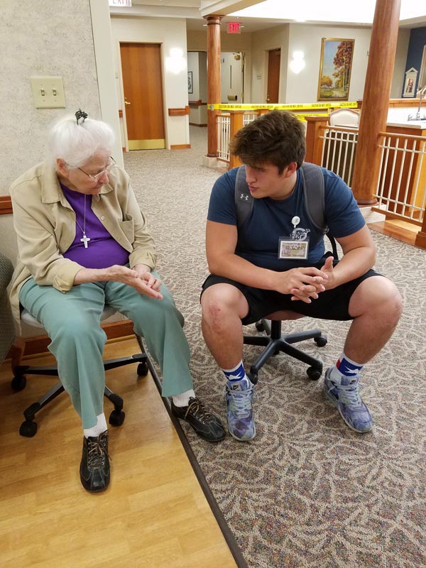 Teens throughout the Wabash Valley flocked to Saint Mary-of-the-Woods during the first of June to volunteer with the Sisters of Providence. During their time here, the teens had an opportunity to interact with the sisters as well as those residing in Providence Health Care. They took part in events like Bingo, exercise, baking, singing, conversations and more.