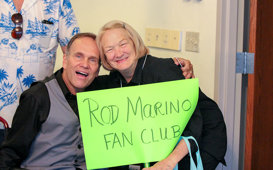 Providence Associate Christine Boyle, self-proclaimed president of the Rod Marino fan club, poses with Rod after his performance for the sisters and associates Sunday evening.
