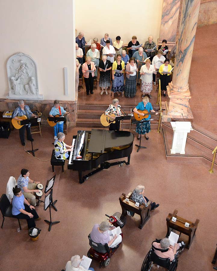 Sisters and associates gather as musicians at the Jubilee Mass on Saturday.