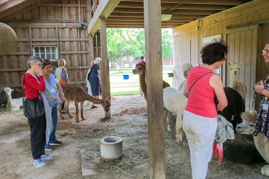 Some Providence Associates chose to participate in a tour of White Violet Center for Eco-Justice on Saturday evening. Here they visit up close with the alpacas.