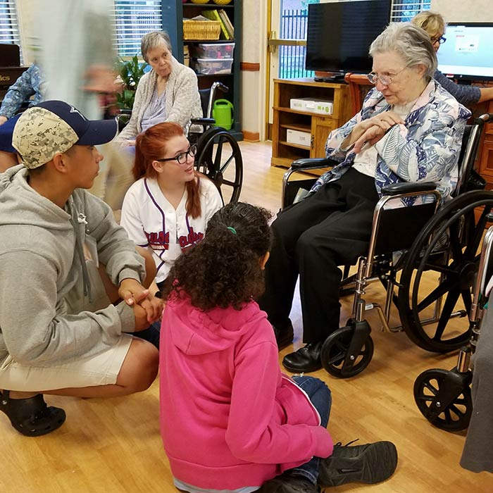 Youth, elders learn from each otherAfter visiting with Sister Marceline Mattingly, age 102, Jolyssa Cortez wrote: “I asked her in what year she was born and she said, ‘1915.’ I think that is amazing because she lived through so much history in her life. She said the most amazing part of the history she lived was seeing the technology industry grow. After my visit, I felt like a whole new person.”