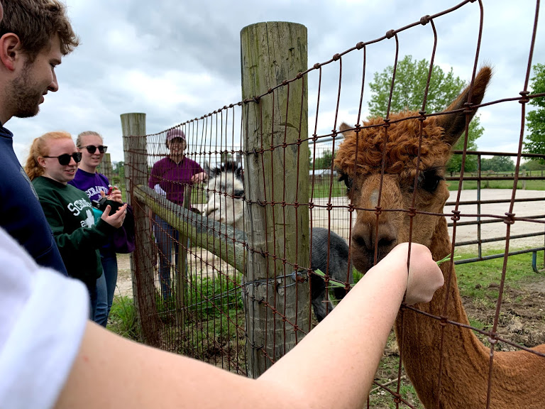 This May, students from The University of Scranton, a Catholic and Jesuit university in Pennsylvania, spent a week of service with the Sisters of Providence. During their time at White Violet Center for Eco-Justice they weeded, mulched and planted. They also did alpaca and chicken chores. They even got to experience the birth of a cria who was named Providence Ignatius in celebration of our ongoing relationship with Jesuit schools. Students also had the opportunity to volunteer at Providence Food Pantry and The Helping Hands in West Terre Haute. We are so grateful for their service. Note: Many of the photos in this album were taken by the students during their stay.