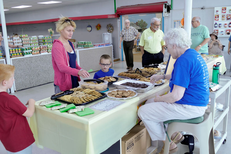 Sister Patty Fillenwarth helps visitors choose between cookies and brownies.