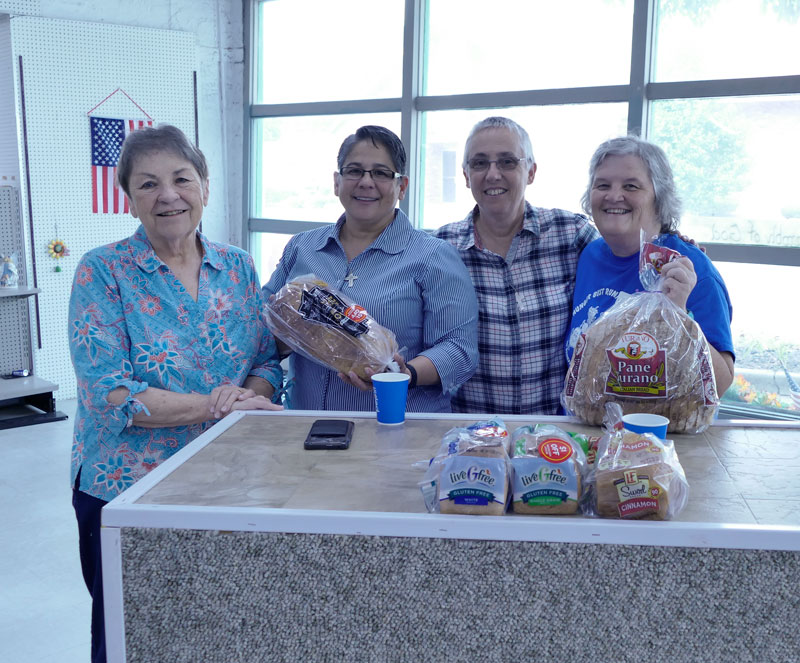 “Breaking bread” takes on new meaning at the pantry. From left, Sisters Ann Sullivan, Joni Luna, Barb Battista and volunteer Vicki Dickinson.